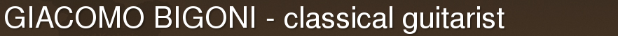 After winning international solo awards, touring European concert halls (Spain, Romania, England, Switzerland...) and producing his albums Take Time and Extreme Guitar Solo which have been highly acclaimed by specialized press, Giacomo Bigoni is now a highly developed soloist, playing a huge repertoire of classical solo, modern style fusion, concertos for guitar and orchestra and chamber music.